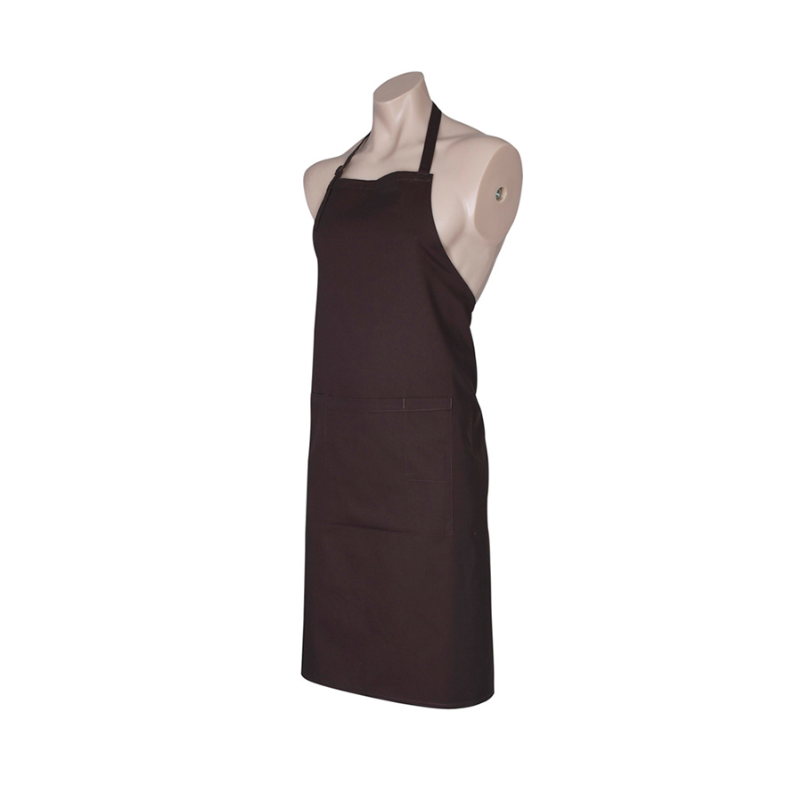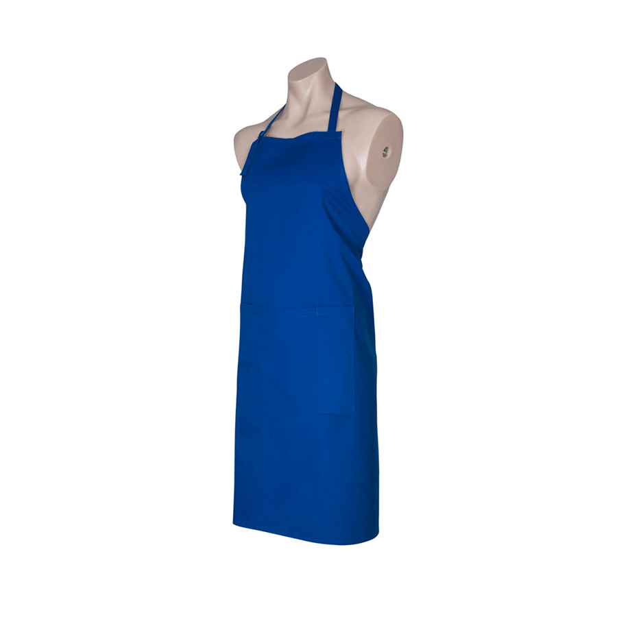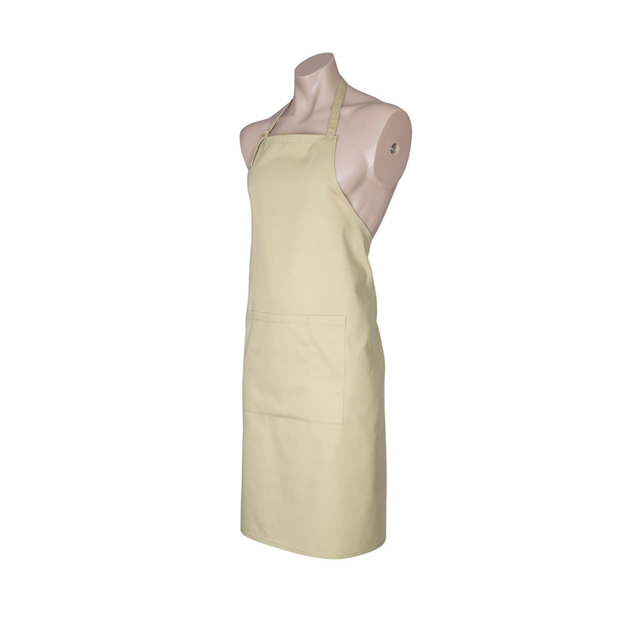 SIZES Free FABRIC 65% Polyester 35% Cotton Twill 190 GSM FEATURES Bib apron with adjustable halter self fabric strap around neck Unique styling Towel loop at back of apron 1 Large central front pocket with special side slide pen and bottle opener provision Free size 86cm x 70cm (34in x 28in)