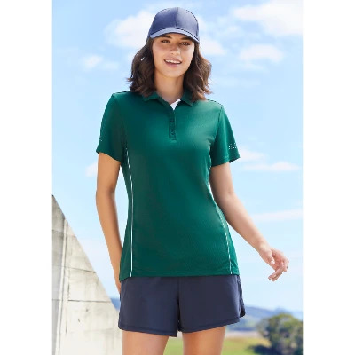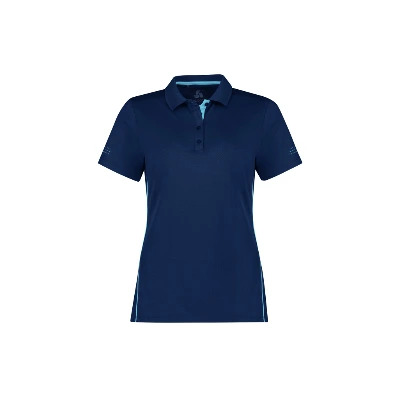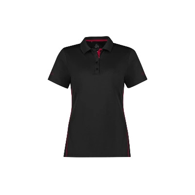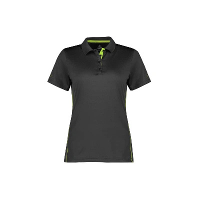 Sizes: 6 – 24; Fabric: 97% Polyester, 3% Elastane,180 GSM,BIZ COOL Breathable stretch honeycomb knit,UPF50+; Features: Honeycomb weave with stretch elastane delivers style and comfort,Flat knitted collar with contrast button placket,Side panels with dynamic contrast piping,Unique print features on torso, sleeve and back neck to accent your logo,Longer length for added coverage when moving,Mens style includes loose pocket;