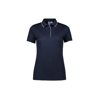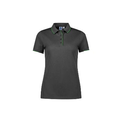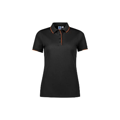Sizes: 6 – 24; Extras: ; Fabric: 80% Polyester, 20% Cotton-backed Pique,BIZ COOL Breathable Cotton-backed Pique,185 GSM,UPF 50+; Features: Breathable pique knit with cotton inside, feels cool and comfortable.,Knitted rib collar and knitted sleeve cuff with contrast stripe highlights your logo,Button through piping placket;