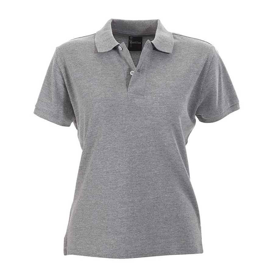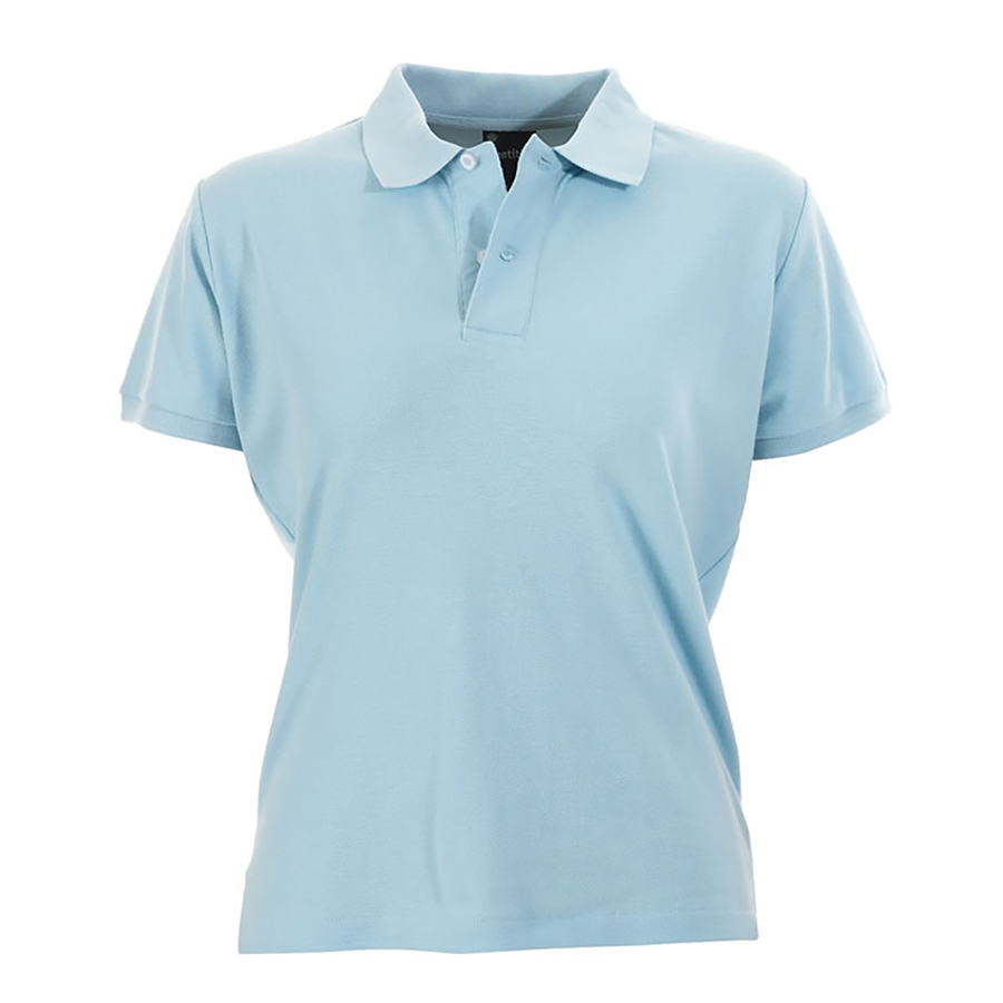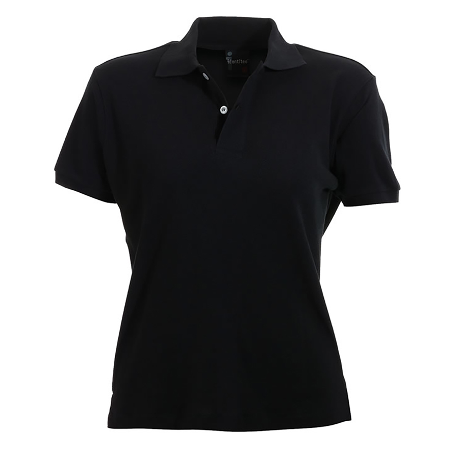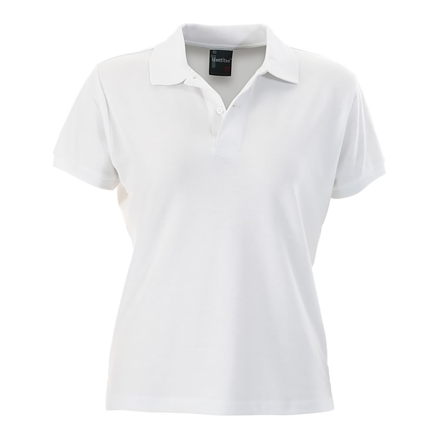 Ladies Slim Cut Polo Shirt Cotton rich pique knit. 80% cotton 20% polyester. 205gsm fabric weight. Knitted sleeve bands & collar. Placket with 2 pearl buttons. Side splits. Designer contour cut SIZE RANGE 8 – 18