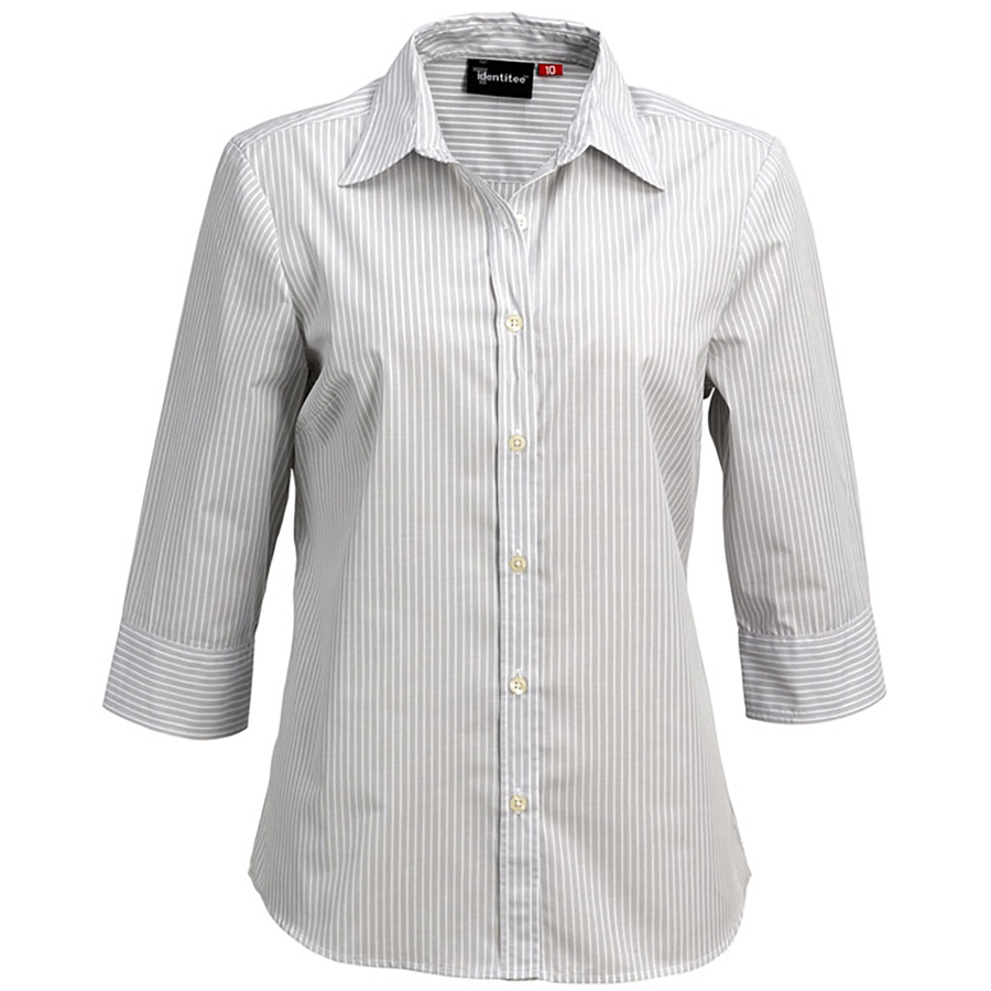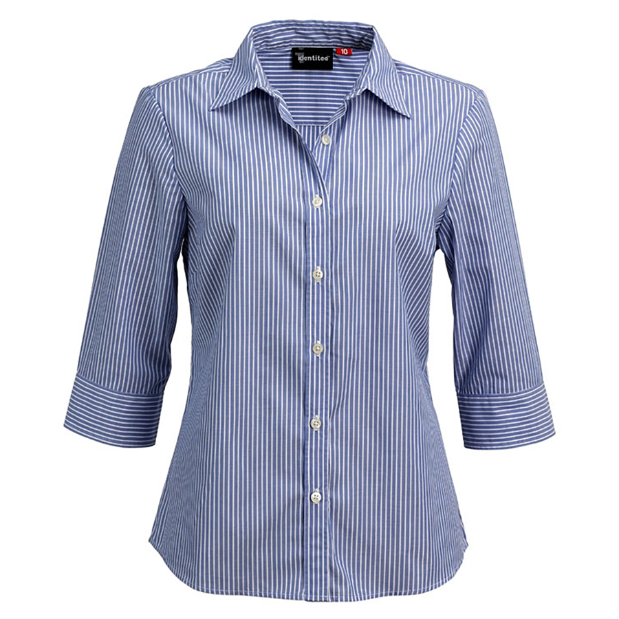 Ladies 34 Sleeve Corporate Stripe Shirt 60% Cotton 40% polyester. Yarn dyed stripe. European collar & cuff. Pearl buttons. SIZE RANGE 8 – 26
