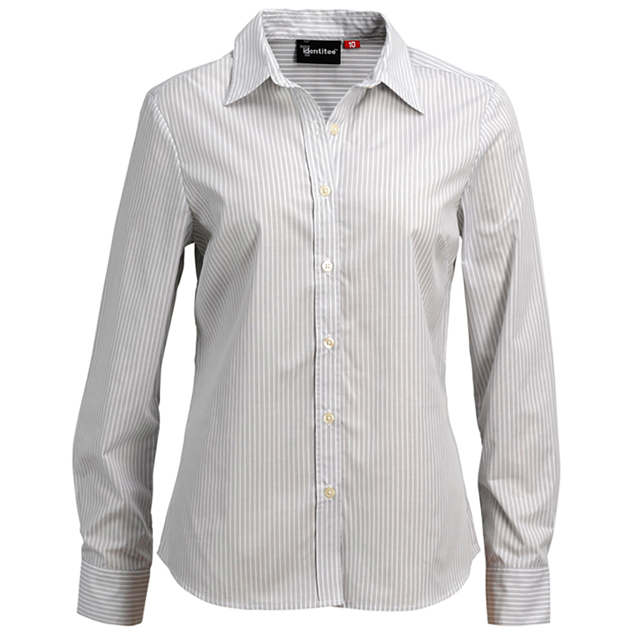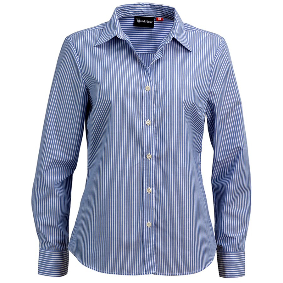 Ladies Long Sleeve Corporate Stripe Shirt 60% Cotton 40% polyester. Yarn dyed stripe. European collar & cuff. Pearl buttons. SIZE RANGE 8 – 26