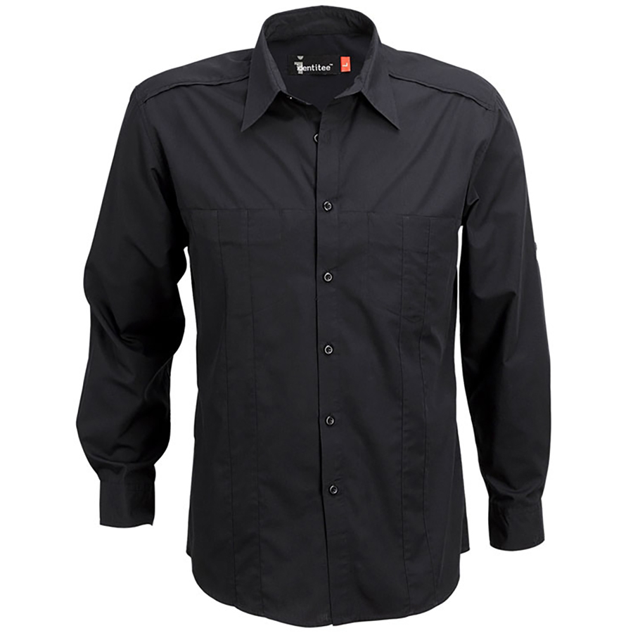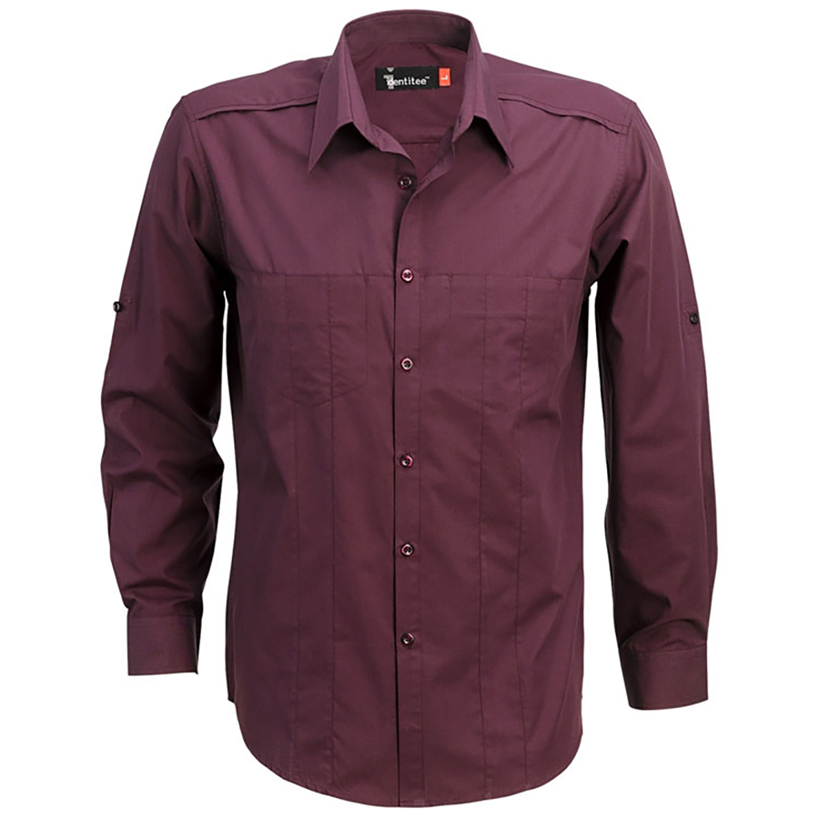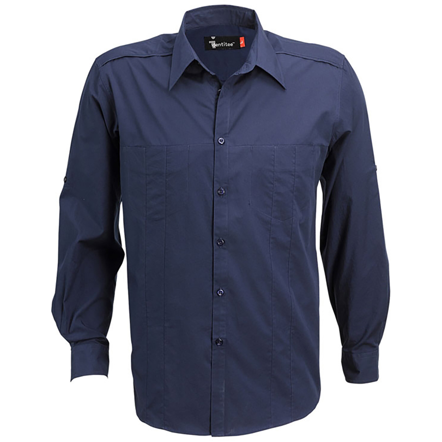 Men’s Long Sleeve Shirt with Concealed Pockets & Tab on Sleeve 65% polyester 35% cotton regular fabric. Concealed twin pockets with stitch detail. Roll up tab on sleeves. Shoulder & back yoke seam detail. SIZE RANGE S-5XL
