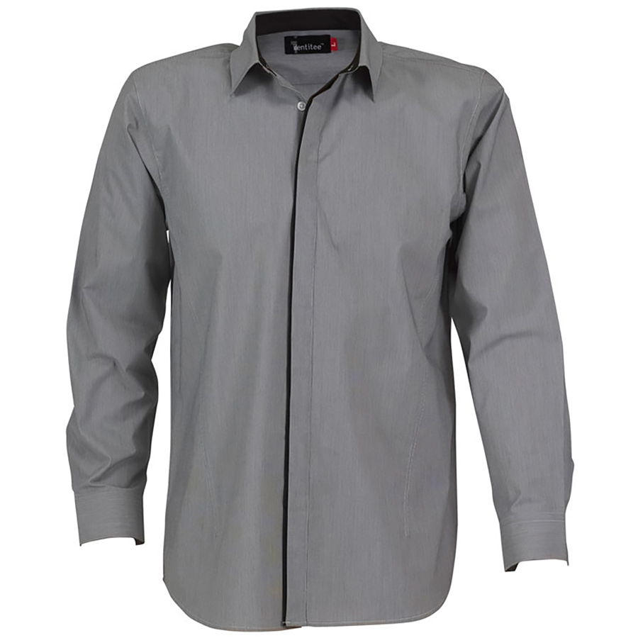 Mens Long Sleeve Stretch Shirt with Concealed Placket 60% polyester 35% cotton 5% spandex. Concealed placket with edging. Contoured front seams for superior fit. Button down collar. Gentle curve hem SIZE RANGE S – 5XL