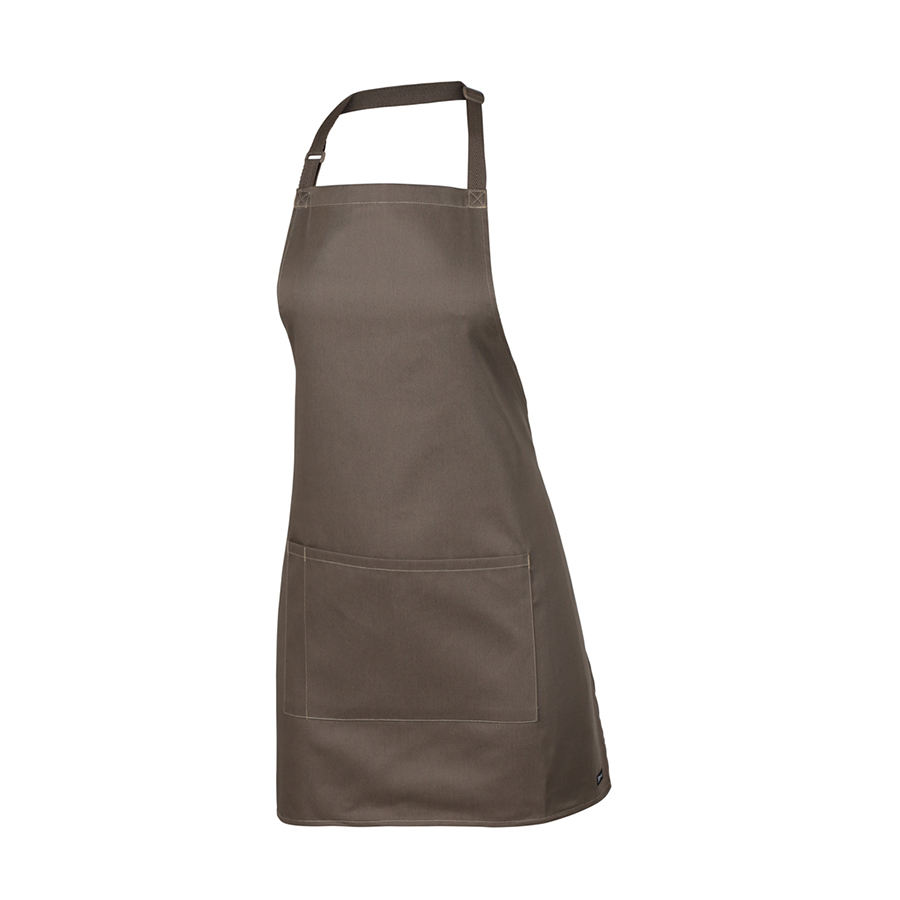 65% polyester for durability. 35% cotton for comfort.195gsm plain dye fabric.Adjustable neck strap with slider.Herringbone strap.Easy care fabric.Pocket size 30cm x 18cm Sizes: 65 x 71 BIB