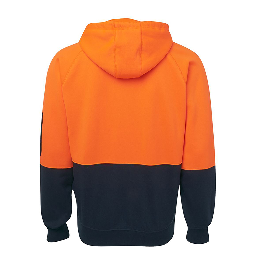80% Polyester for durability. and 20% Cotton for comfort.280gsm fleece fabric.Contrast panel at body and sleeves.Rib basque sleeve cuffs for improved durability.hood with drawcord.Easy care fabric.Two front pockets and pen pocket on sleeve.Complies with Standards AS/NZS 1906.4:2010 AS/NZS 4602.1:2011 Day Only. Compatible with JB’s wear Interchangeable 3CDT Drawcord 5pk or Zip Puller 3CZP 10pk (Both sold separately) Sizes: S|M|L|XL|2XL|3XL|4XL|5XL