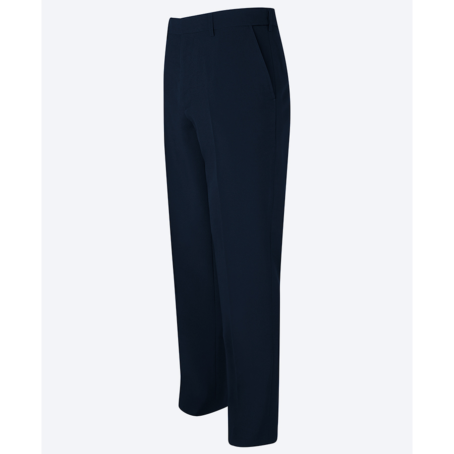 100% Polyester mechanical stretch fabric.Constructed adjustable waist with belt loops.Two front slant pockets. one patch pocket at WRH inside pocket bag and back jet pocket.Large turn up at hem for length adjustment.Full tailored styling to sllow for further alteration Sizes: 77R|82R|87R|92R|97R|102R|107R|87S|92S|97S|102S|107S|112S|117S|122S|127S|132S