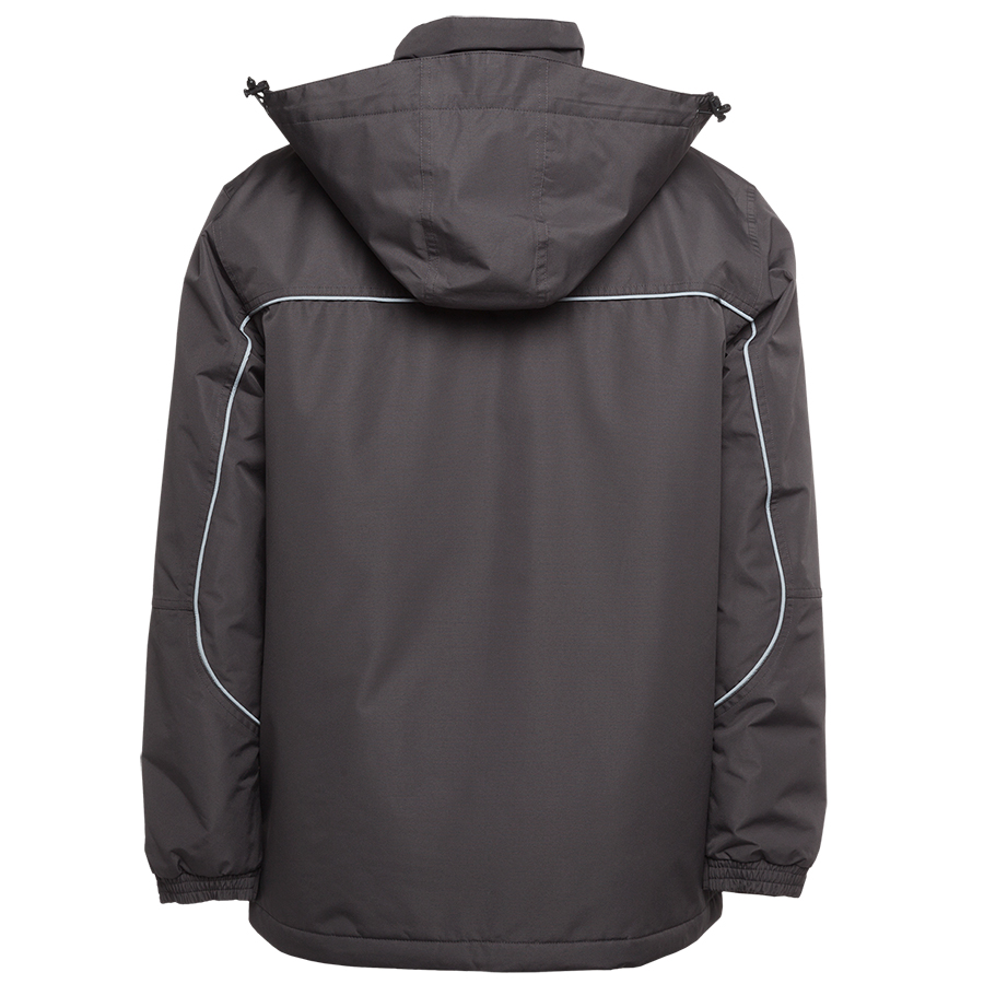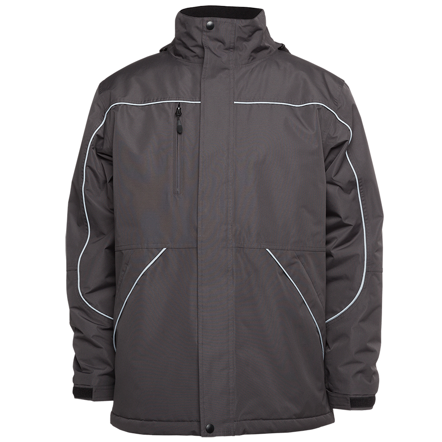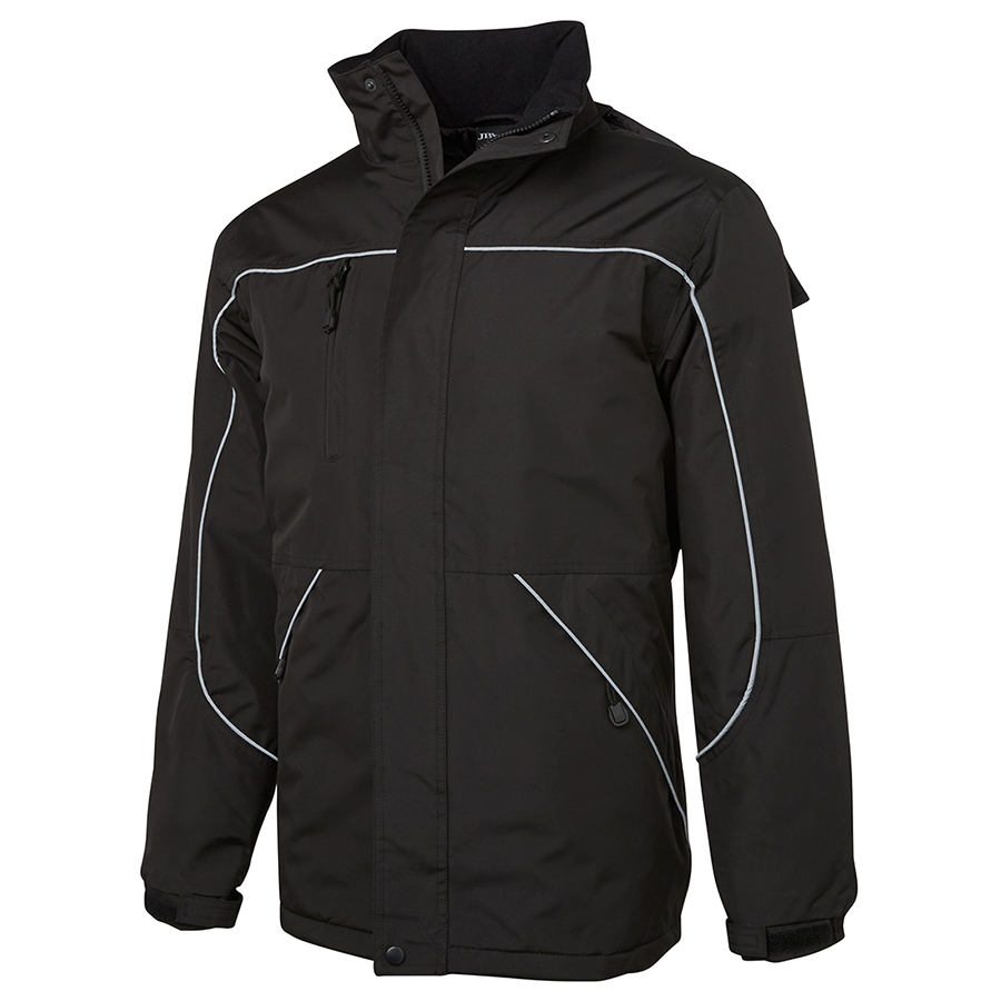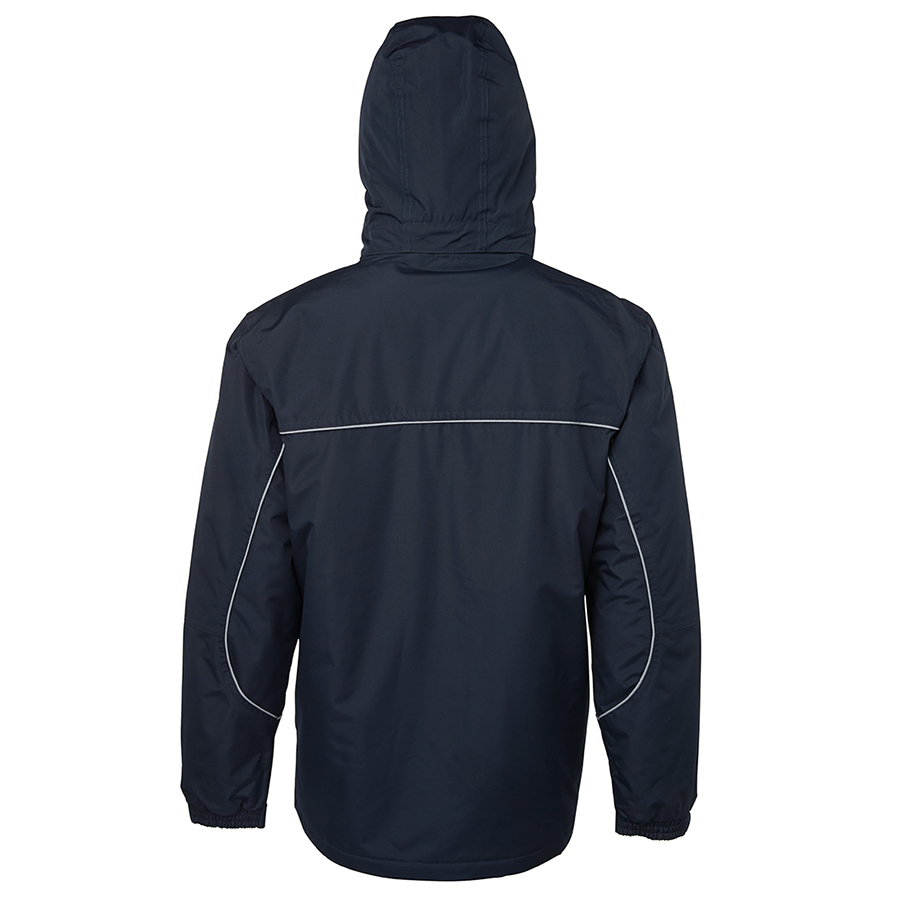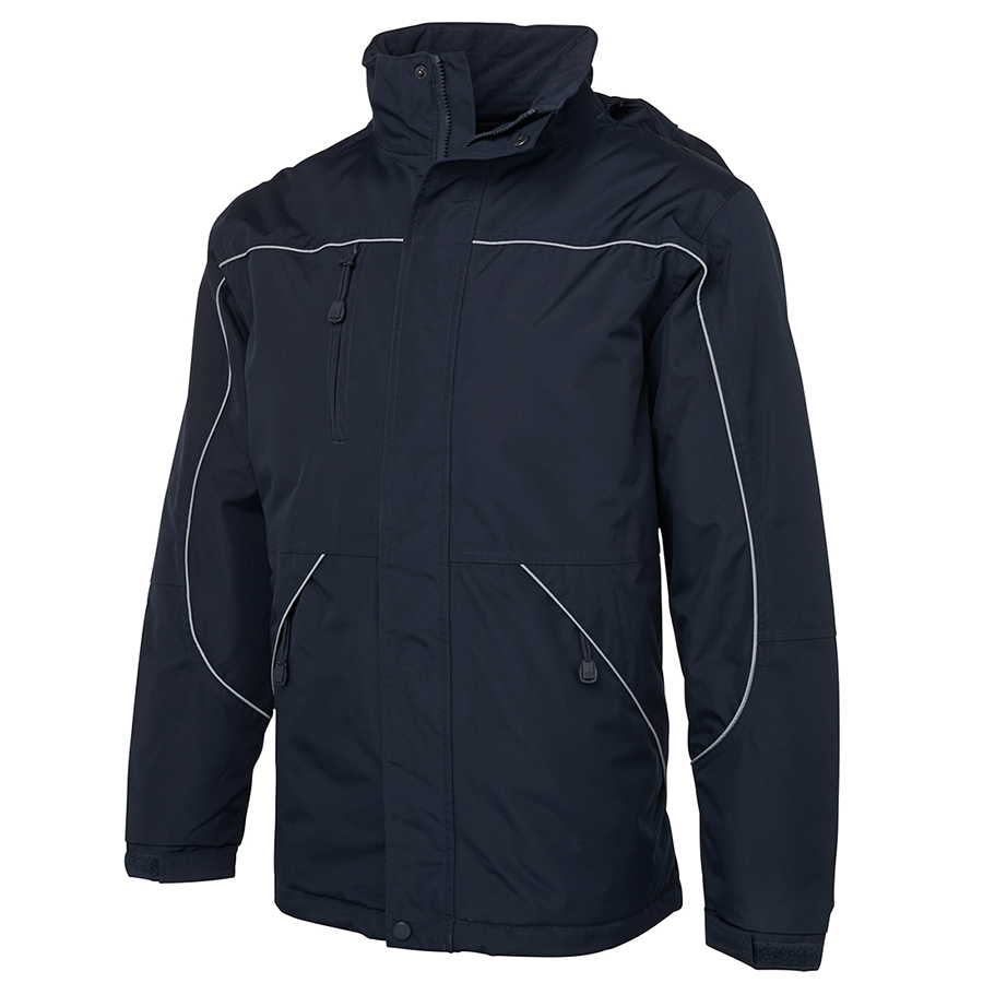 100% Polyester pongee textured finish waterproof 2000mm shell.Diamond quilted polyfill lining for improved warmth and durability.Sealed seams enhance water protection.Removable hood with neck protector. internal storage pouch and adjustable shoestring bottom hem.Three external zip-up pockets and three internal pockets.Embroidery zipper. Compatible with JB’s wear Interchangeable zip puller 3CZP 10pk (sold separately) Sizes: XS|S|M|L|XL|2XL|3XL|4XL|5XL