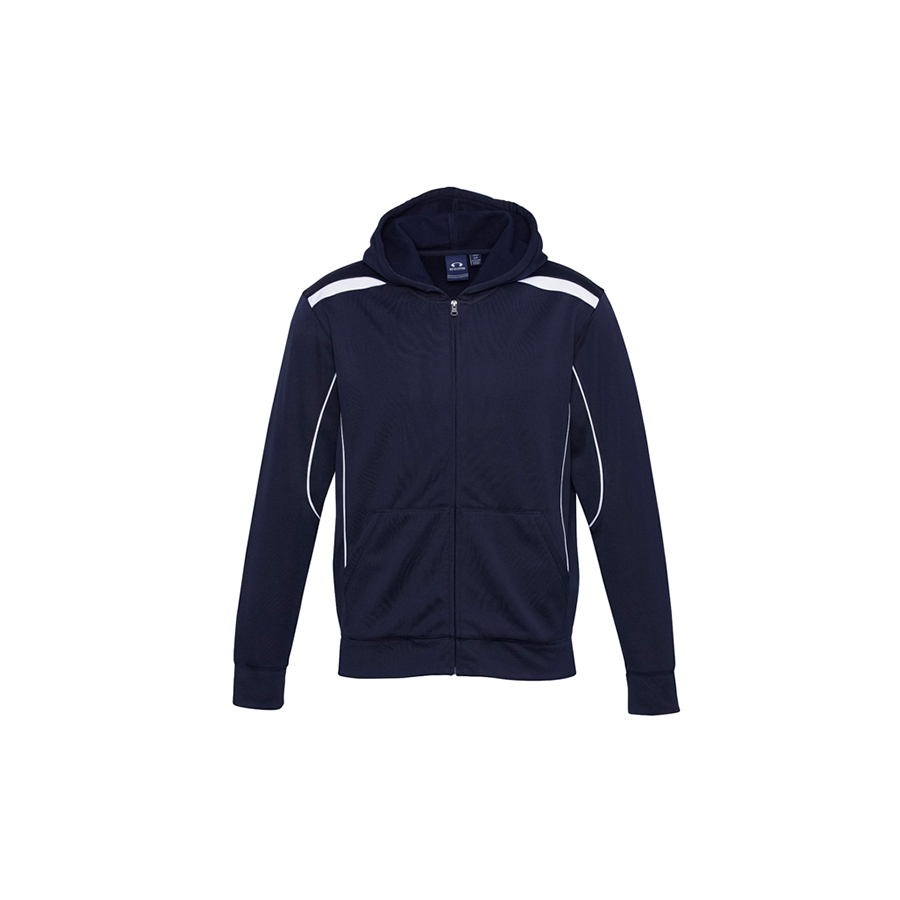 SIZES 4 – 16 FABRIC 100% Polyester Fleece 245 GSM FEATURES Contrast shoulder panels and piping Full front zipper with kangaroo pocket Matching modern loose-fit hem ribbing No drawstring in hood – keeping kids safe