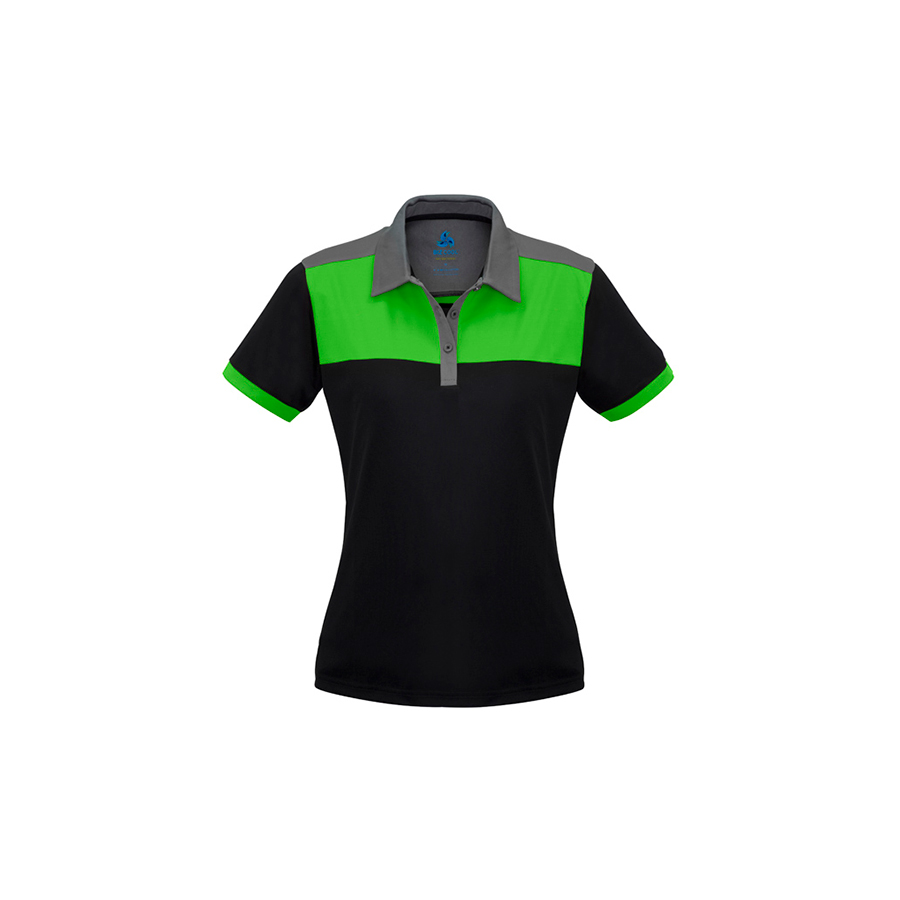 SIZES 8 – 24 FABRIC 100% BIZ COOL™ Polyester sports interlock 155 GSM UPF rating – Excellent FEATURES Antibacterial treated fabric resists odour – keeps you cool and fresh Contrast panels Self-fabric collar and sleeve cuff