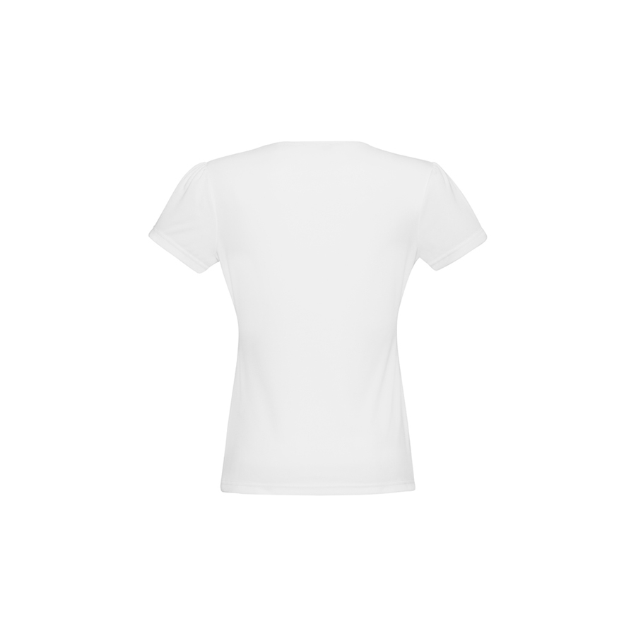 SIZES 6 – 26 FABRIC 100% Polyester interlock knit Easy Care FEATURES Features soft gathers at neckline Versatile style with straight hem – wear tucked in or out Comfortable stretch knit