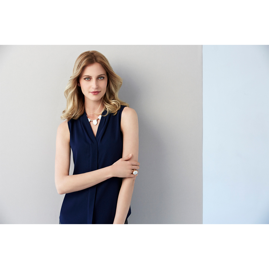SIZES 6 – 20 FABRIC 100% Mechanical Stretch Polyester FEATURES Easy elegance. Our Madison sleeveless blouse has a clean shawl collar neckline and concealed buttons creating a beautiful understated silhouette. Perfect for warmer climates or for layering under a jacket.