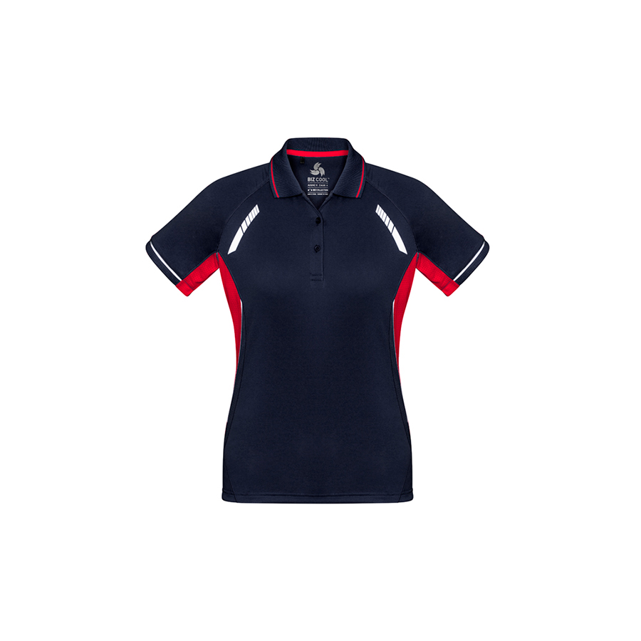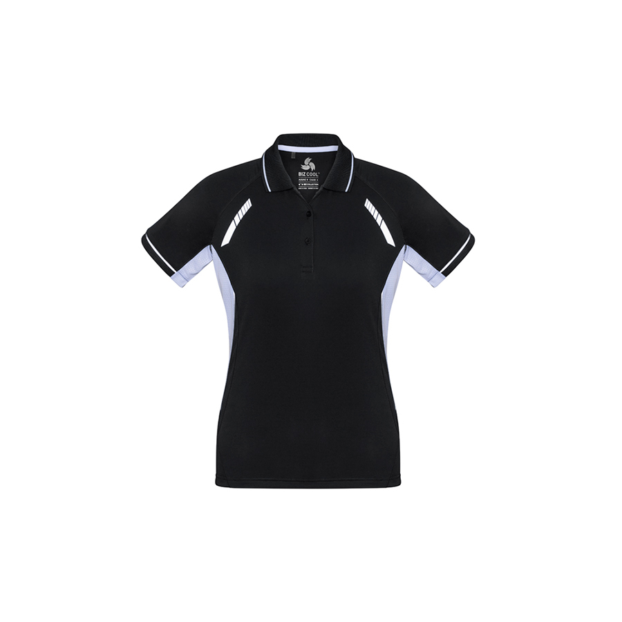 SIZES 6 – 24 FABRIC 100% BIZ COOLâ„¢ Micro Polyester 155 GSM UPF rating – Excellent FEATURES Silver reflective trims help you stand out Dynamic design with bold colour contrast Mesh panels for greater ventilation where you need it most Knitted stripe collar
