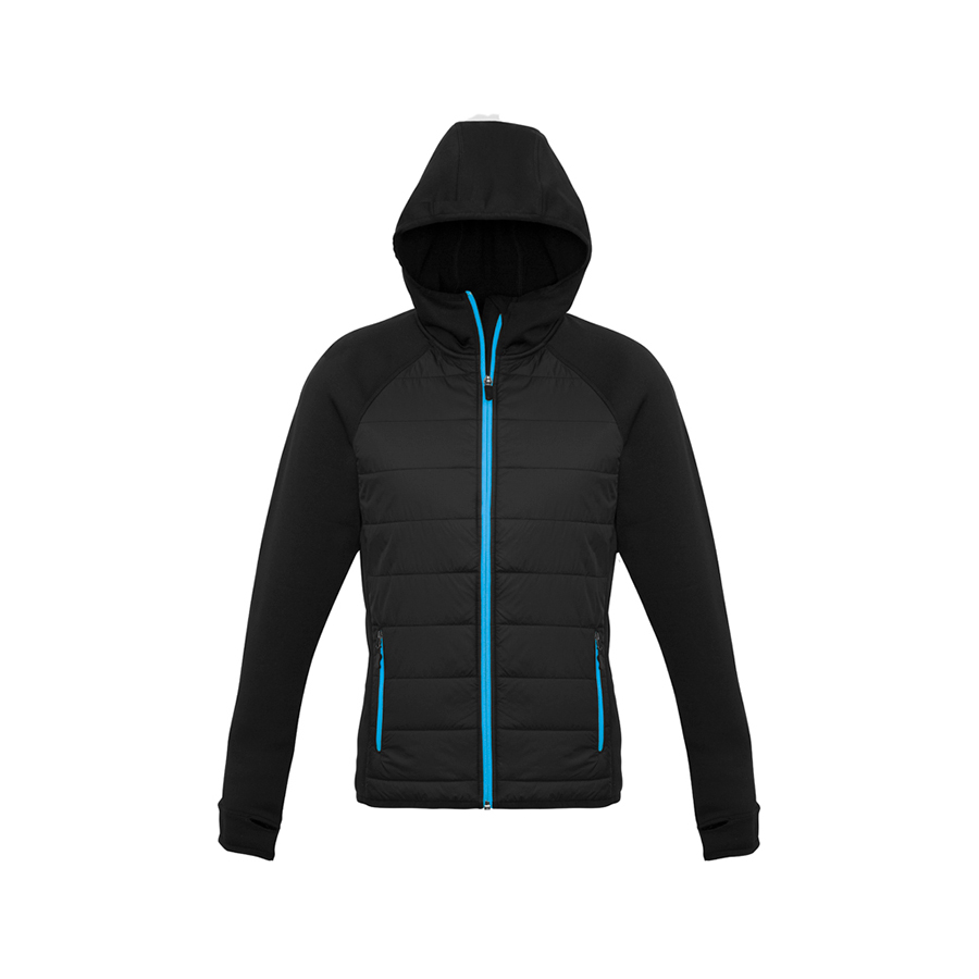 SIZES XS – 2XL FABRIC Front Body: 100% Quilted Nylon Ripstop Back/Sleeves: 95% Polyester 5% Elastane Stretch Bonded Fleece Insulation: 100% Hi-loft Polyfil FEATURES Thumb loops to keep hands warm Insulated quilting on chest front for lightweight warmth Contrast front zipper and pockets Stand up collar with intergrated bonded fleece hoody