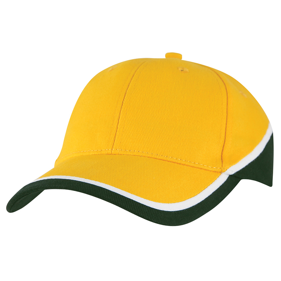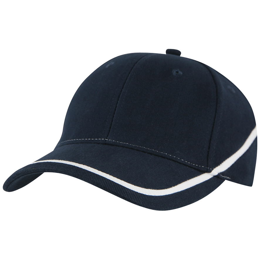 Like rays on the horizon. the colours sweep around the base of this cap drawing attention to the wearer. Fabric strap with gunmetal buckle and tuck-in return|Pre-curved peak|Padded cotton sweatband|Embroidered eyelets|Structured 6 panel design|Heavy brushed cotton