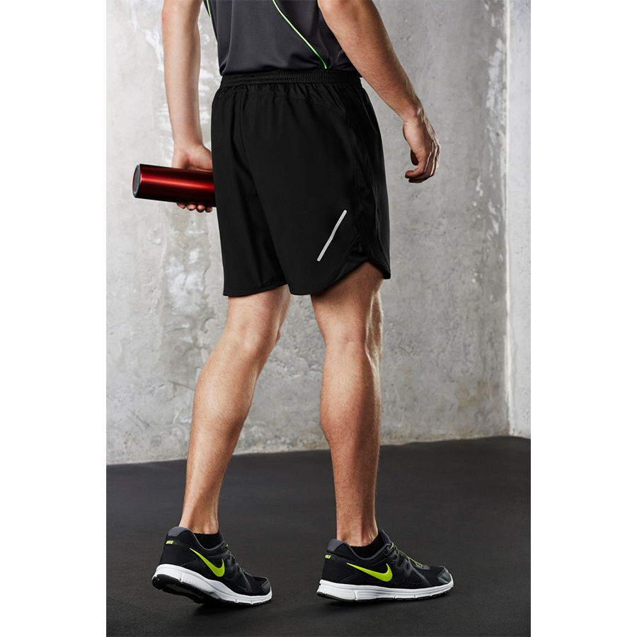 SIZES S – 3XL 5XL FABRIC BIZ COOL™ Breathable 92% Polyester 8% Elastane Stretch fabric 130 GSM FEATURES Quick dry fabric with mesh panels for added breathability Reflective visability tape leg feature Built-in quick drying mesh fabric briefs reduces chaffing No twist? elastic waist with internal soft drawcord Internal key fob pocket Available in Black and Navy only