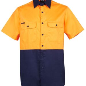 NCC HI VIS TWO TONE LONG SLEEVE COTTON DRILL FOOD INDUSTRY SHIRT WITH PRESS STUDS AND NO POCKETS