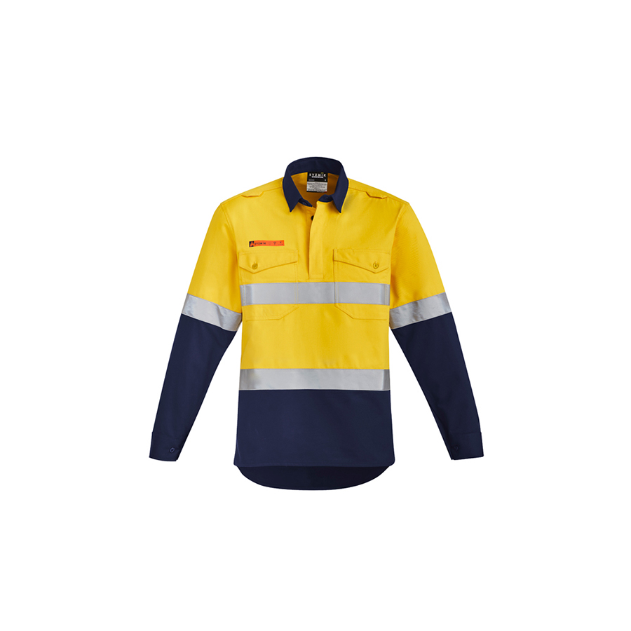 Syzmik Mens Orange Flame HRC 2 Hoop Taped Closed Front Spliced Shirt (Fire Rated)