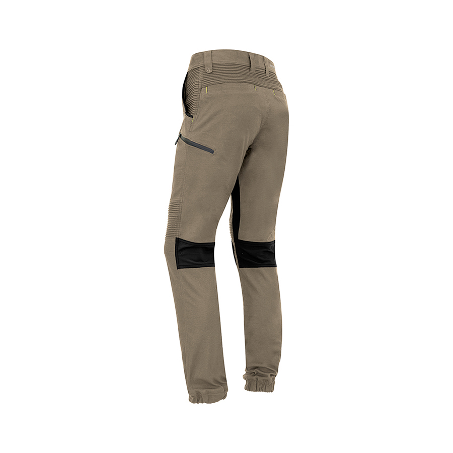 Unique stretch pleating across the back waist, front pockets and above knee for added stretch .