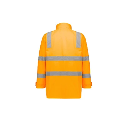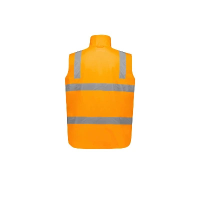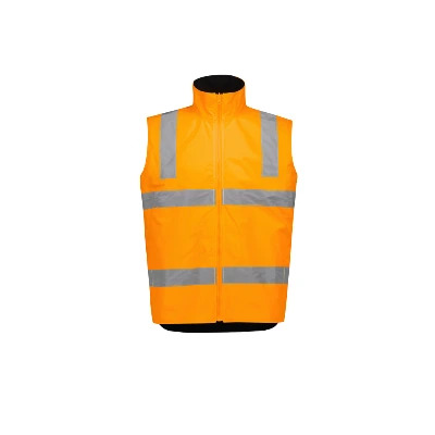 Sizes: XXS – 5XL, 7XL; Fabric: Outer: 100% 300D Oxford Polyester; Jacket Lining: Polyester Mesh, 70 GSM; Vest Lining: Brushed Polar Fleece, 340 GSM; Features: Waterproof and fully seam sealed, Waterproof rating 20,000mm, VIC Rail tape configuration and colour, Reversible vest zips into jacket and can be worn separately or combined, Vest with warm fleece lining, Concealed hood that stores into collar, Storm flap, 2 Waist pockets with flap closures and side hand pockets on outer jacket, Reversible vest with 2 waist pockets, Embroidery access on vest and jacket, Adjustable cuff fasteners;
