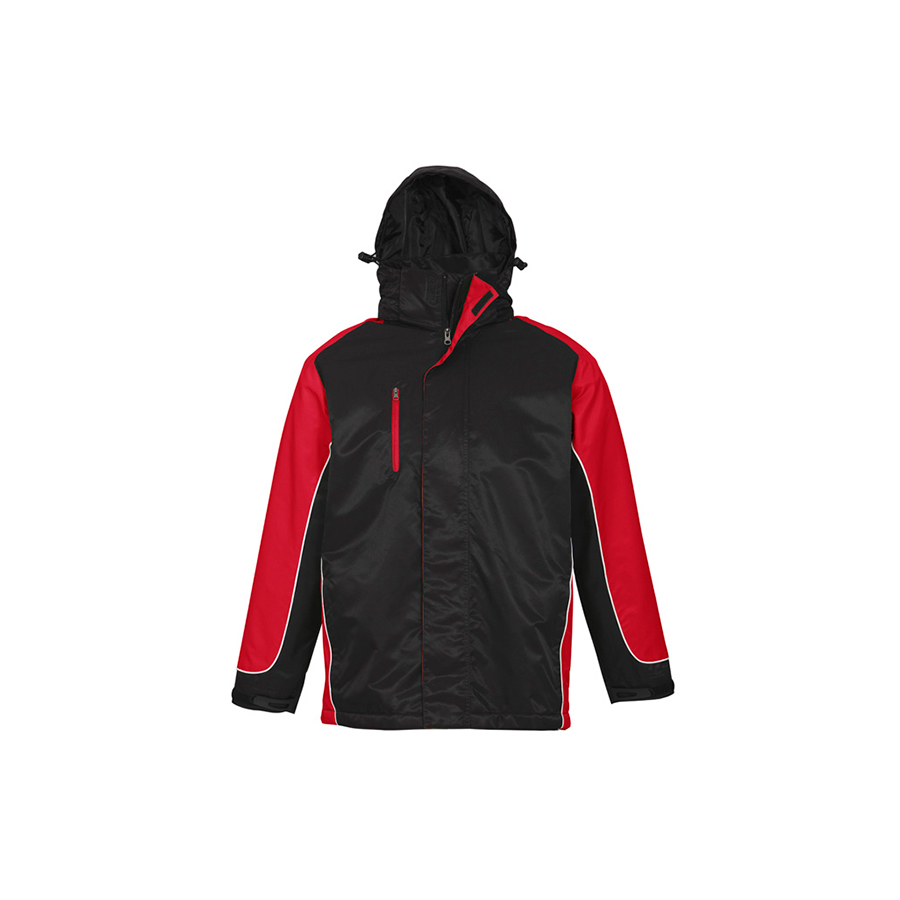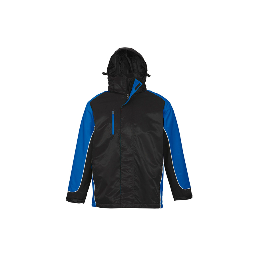 SIZES XS – 3XL 5XL FABRIC Outer: 100% Nylon – PU Coated Performance Fabric Body Lining: 100% Polyester Micro Fleece Sleeve Lining: 100% Polyester FEATURES Contrast panels with piping Concealed hood with 2 way full zip and storm flap Internal pocket Front right chest pocket with audio port access Zipper access for embroidery