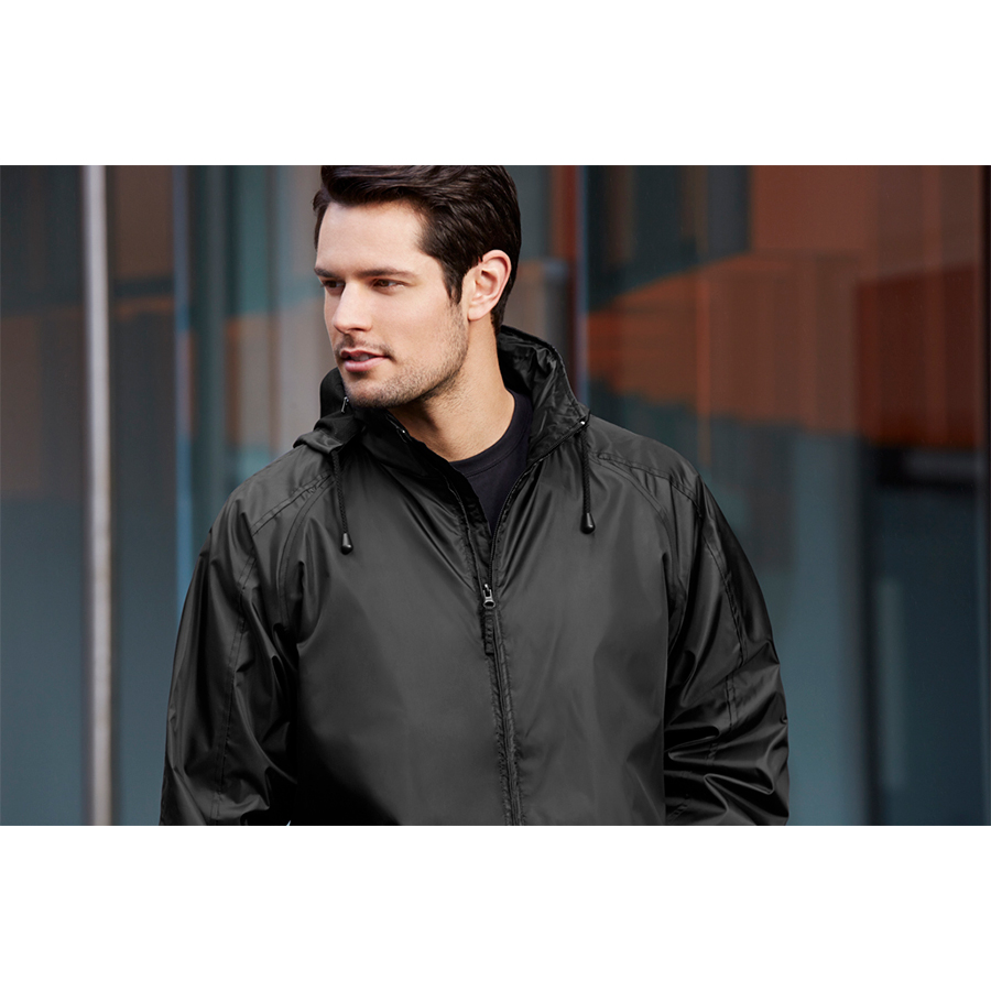 SIZES XS – 3XL 5XL FABRIC Outer: 100% Polyester Lining: 100% Polyester Mesh Lining FEATURES Raglan sleeve Concealed zippered front with nylon tab Hidden zippered hood with adjustable drawstrings Full front zipper and 2 angled zippered front pockets with nylon tabs Elasticised narrow rib cuff