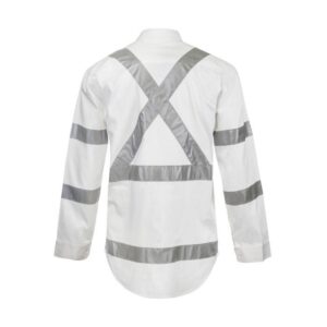 NCC HI VIS TWO TONE FRONT LONG SLEEVE COTTON DRILL SHIRT WITH X PATTERN CSR REFLECTIVE TAPE