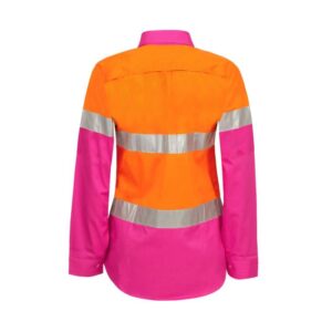 NCC LADIES LIGHTWEIGHT HI VIS TWO TONE LONG SLEEVE VENTED COTTON DRILL SHIRT WITH CSR REFLECTIVE TAPE